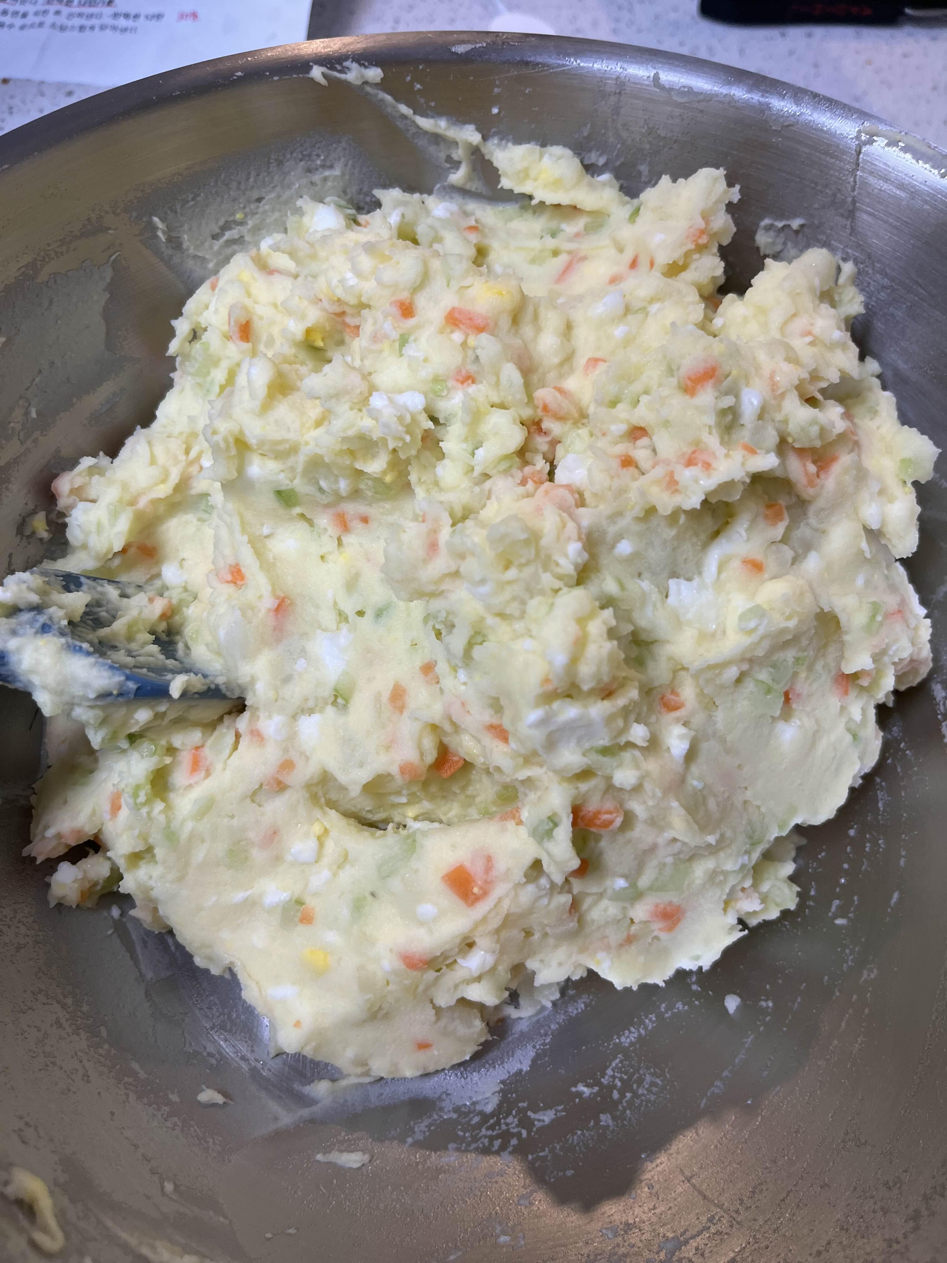 조리시간이 끝나면 감자를 꺼내서 나머지 재료와 섞어줍니다.