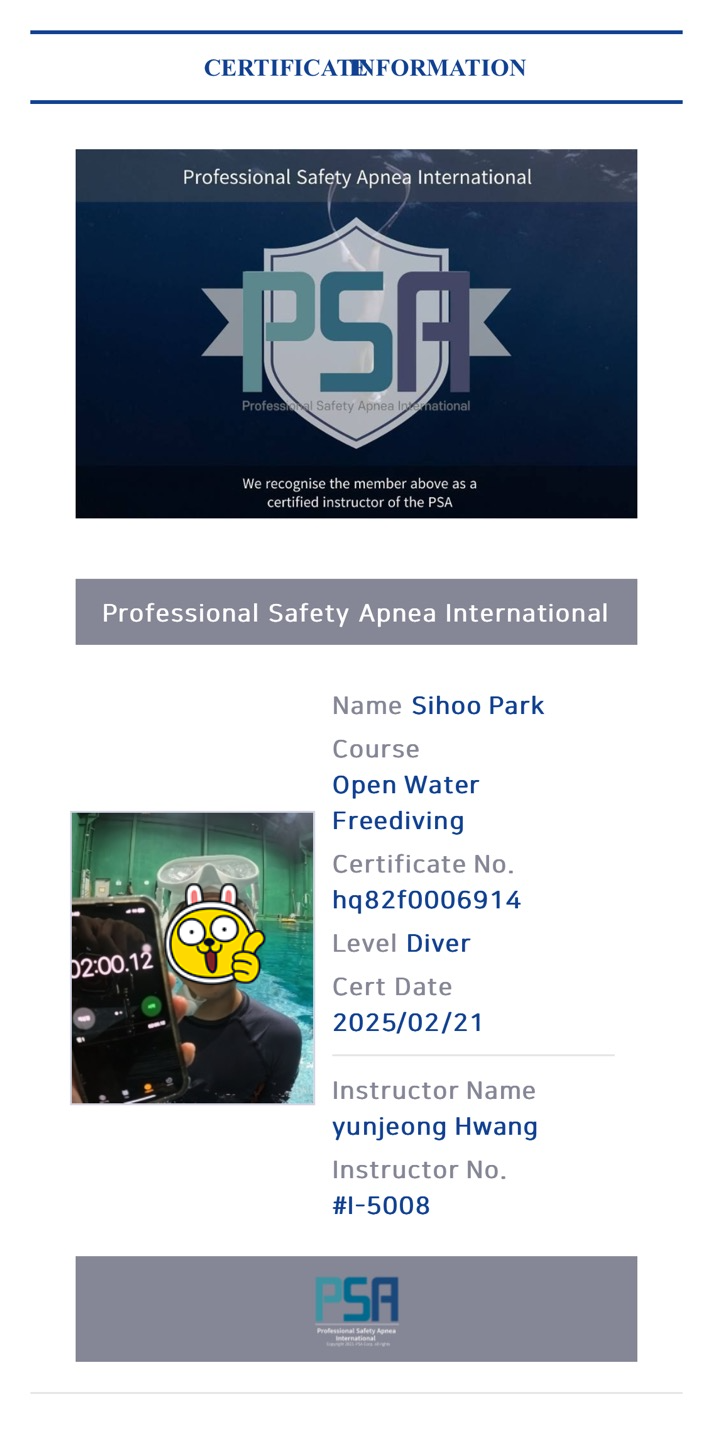 프리다이빙 배우는 너희들을 보면서 그저 뿌듯하고 자랑스러웠어.