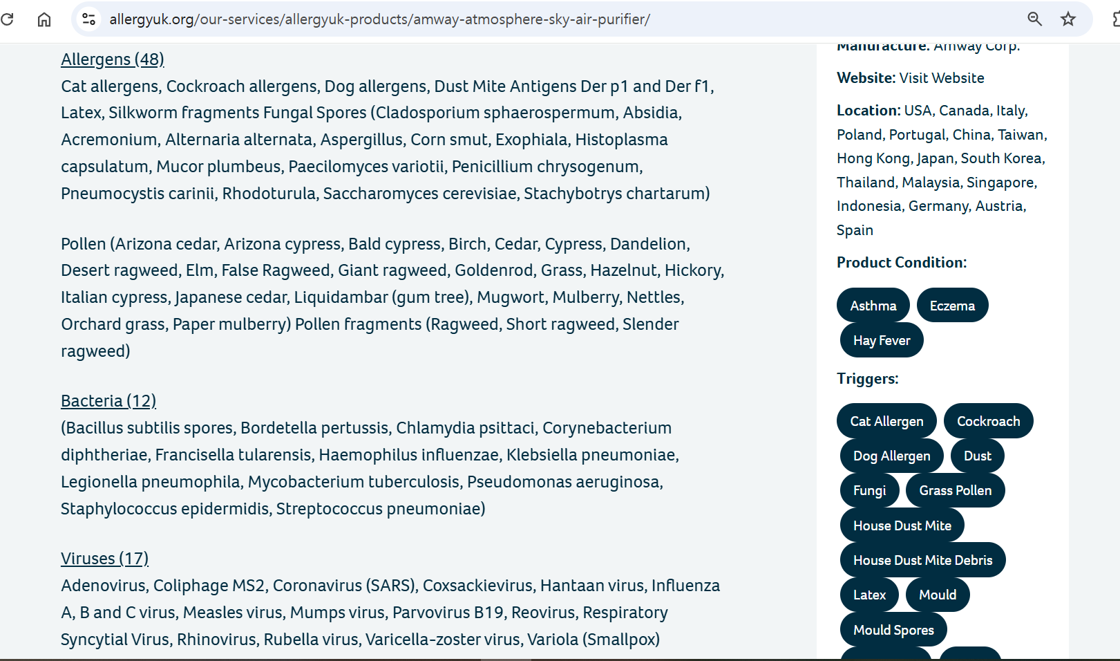 그 많은 제품들은 꽃가루 이외에 다른 물질들(캣알러지, 집먼지진드기, 담배연기, 곰팡이균, 바이러스 등)