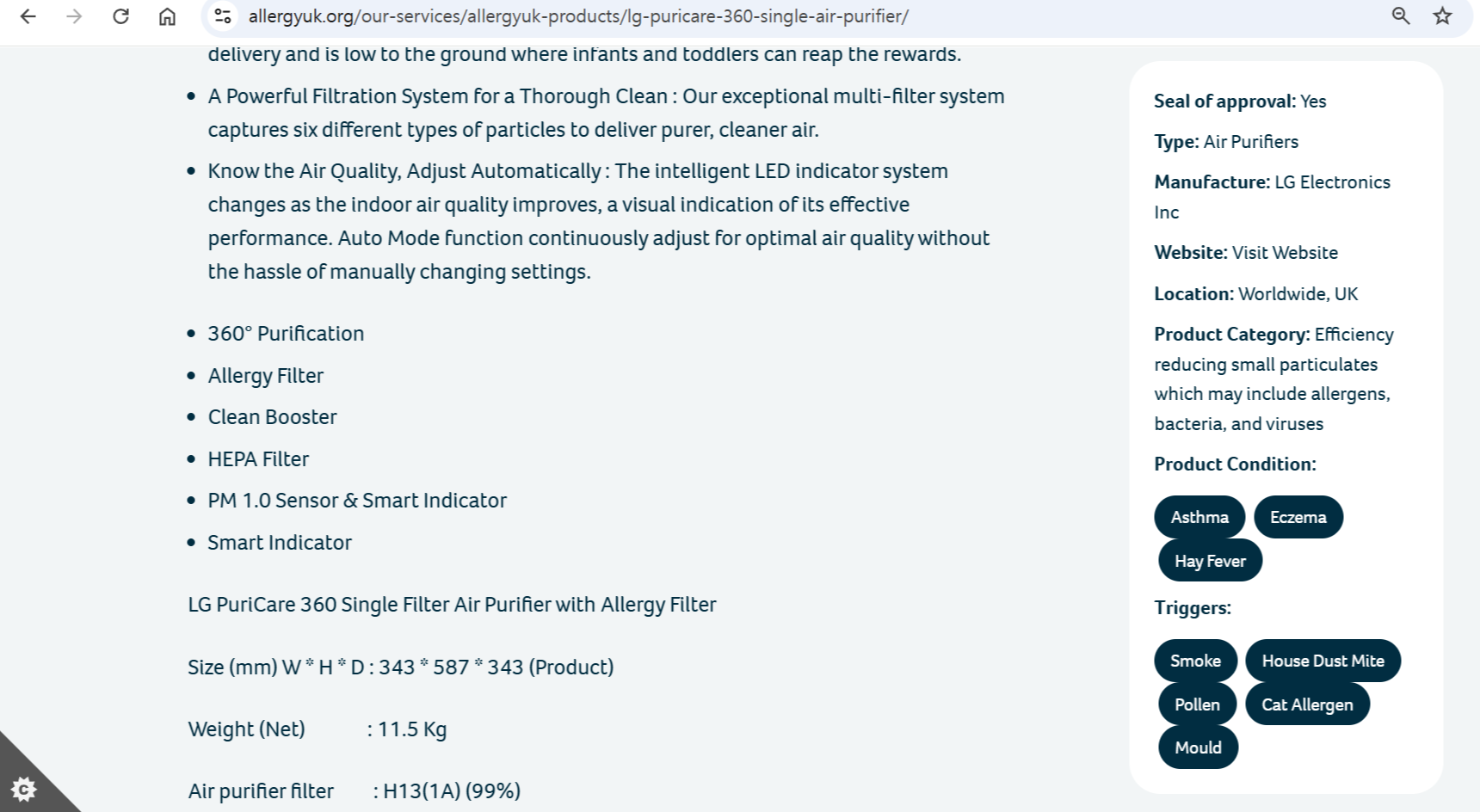 이런 알레르기 유발물질을 잘 걸러주는냐.... 가 굉장히 중요했어요.